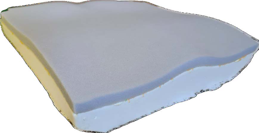 Bas av polyuretan formgjuten efter kroppen, toppskikt av 1,5 cm kallskum.